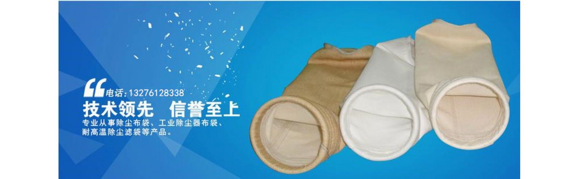 主營產(chǎn)品:除塵布袋,濾袋,袋籠、骨架,滌綸針刺氈,氟美斯針刺氈,美塔斯針刺氈,PPS針刺氈,PTFE針刺氈,除塵骨架,