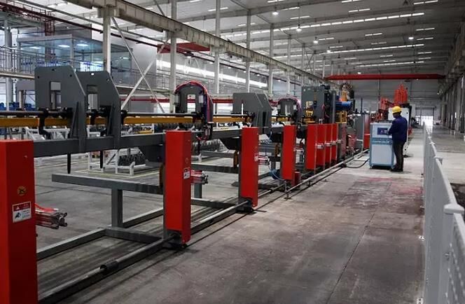 在項目建設初期,該公司引進國內(nèi)先進水平的PC生產(chǎn)流水線、全自動智能鋼筋加工線并開發(fā)智能混凝土攪拌站。PC流水線由自動清掃、噴油、劃線、邊模安裝、混凝土澆筑、趕平、預養(yǎng)護窯、抹光、養(yǎng)護、翻轉(zhuǎn)、沖洗等自動化設備組成,整個流水線各操作平臺由中央控室統(tǒng)一調(diào)度、控制,實現(xiàn)智能化、自動化生產(chǎn);鋼筋加工流水線是由全自動智能鋼筋桁架焊接機器人、全自動智能鋼筋彎箍機器人、全自動智能鋼筋柔性調(diào)直機器人、棒材鋼筋加工中心等鋼筋加工設備組成,可實現(xiàn)圖形輸入,數(shù)控加工;公司使用的混凝土攪拌站,是由徐工施維英有限公司設計、制造的符合公司生產(chǎn)實際需要的行業(yè)先進裝備,該設備擁有“一站式雙主機、立體料倉”的特點,可生產(chǎn)多品種混凝土,尤其具有同時生產(chǎn)兩種型號混凝土的功能。