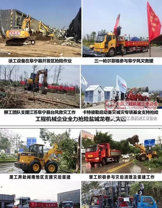 2015年底以來,深圳發(fā)生大范圍滑坡災(zāi)害、江蘇鹽城市阜寧、射陽等地出現(xiàn)強對流天氣、超強龍卷風(fēng)襲擊、閩南地區(qū)遭遇強臺風(fēng)“莫蘭蒂”……在這些災(zāi)害發(fā)生時,廈工、晉工、中聯(lián)重科、林德叉車、徐工、三一帕爾菲格、柳工、卡特彼勒等工程機(jī)械企業(yè)快速反應(yīng),迅速集結(jié)救援設(shè)備,第一時間投入到搶險救援中去。紛紛派出大型工程機(jī)械設(shè)備和援助隊伍加入到救援與災(zāi)后重建工作,并向災(zāi)區(qū)捐款捐物、捐贈機(jī)械設(shè)備,展現(xiàn)了工程機(jī)械行業(yè)企業(yè)一如既往的強烈社會責(zé)任感和崇高的奉獻(xiàn)精神。