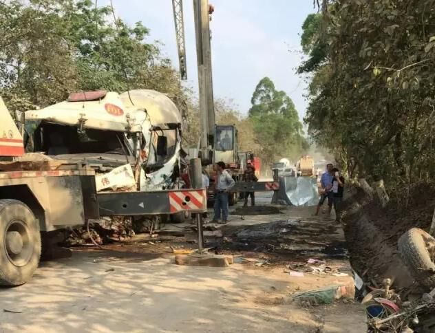 一輛混凝土車(chē)撞上一名騎摩托車(chē)的男子,摩托車(chē)被壓扁粉碎,駕駛員頭部被壓,當(dāng)場(chǎng)不幸身亡?;炷淋?chē)散架報(bào)廢,司機(jī)受輕傷。