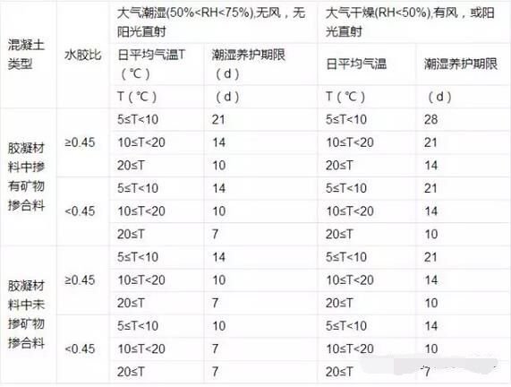 不同混凝土潮濕養(yǎng)護的最低期限