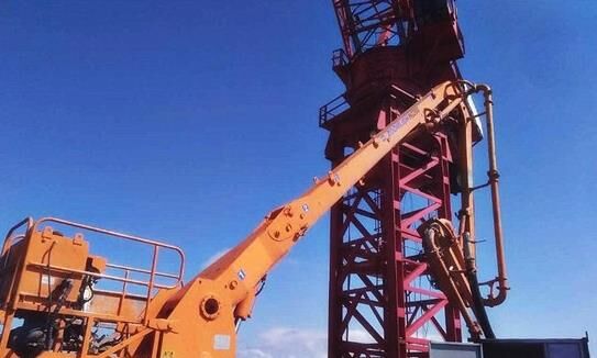 中聯(lián)重科HG20G橫折臂布料機(jī)身居泵送高層與地面上的泵王“打配合”