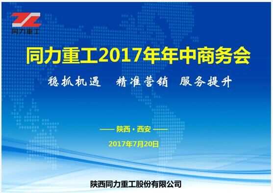 2017年7月20日,以“穩(wěn)抓機(jī)遇 精準(zhǔn)營銷 服務(wù)提升”為主題的陜西同力重工股份有限公司2017年年中商務(wù)會在西安隆重召開。同力重工經(jīng)銷商、服務(wù)商、公司領(lǐng)導(dǎo)、相關(guān)部門百余人出席會議。