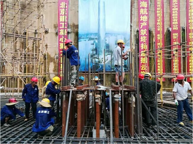 7月9日,由北京建工集團施工的428米的海南第一高樓——??陔p子塔?南塔工程塔樓筏板基礎單次9.6萬噸近4萬方混凝土澆筑施工任務拉開序幕。下午13時36分,海航地產總裁楊猛先生一聲令下,第一車混凝土通過溜槽奔馳而下,海口雙子塔?南塔大體積混凝土澆筑正式開始,全球六大傳媒集團之一Havas、央視9頻道、鳳凰網等多家媒體親臨現(xiàn)場實況轉播報道這項“超級工程”。