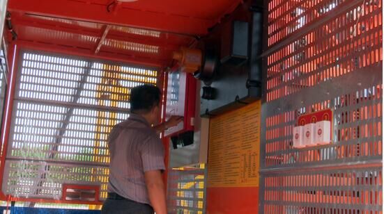 為取得進(jìn)入歐洲市場的通行證,8月3日由臺灣CE認(rèn)證機(jī)構(gòu)人員對方圓集團(tuán)SC200/200施工升降機(jī)進(jìn)行了檢測認(rèn)證。檢測人員首先對吊籠運(yùn)載量限制器、高度限位、各大機(jī)構(gòu)、電氣控制系統(tǒng)、安全保護(hù)裝置進(jìn)行了檢測。另外,還進(jìn)行了額定載荷、超載試驗。
