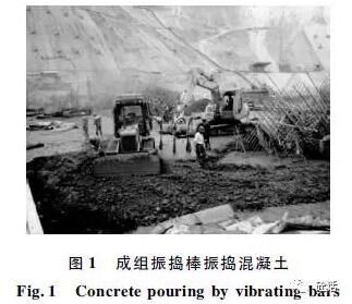 實(shí)際上,坍落度不僅只是一個(gè)靜態(tài)性能的檢測(cè),反映不出在振動(dòng)外力作用下的行為,而且坍落度值大小無(wú)法反映出拌合物塑性黏度,但是塌落時(shí)的快慢在一定程度上與可泵性相關(guān)。早先在檢測(cè)混凝土坍落度后,要用振搗棒從側(cè)面敲擊,稱為“棍度”,也是一種有效的工作度評(píng)價(jià),再結(jié)合肉眼觀察,綜合評(píng)定混凝土的和易性,這種方法應(yīng)該說(shuō)還是比較全面的。當(dāng)然,對(duì)于振搗作用的評(píng)價(jià)需要例如混凝土維勃稠度儀簡(jiǎn)稱VB儀)來(lái)檢測(cè)。筆者前些時(shí)在一個(gè)水電工程施工單位時(shí),建議用VB儀來(lái)評(píng)價(jià)拌合物的工作度,因?yàn)楝F(xiàn)行用50~70mm坍落度來(lái)評(píng)價(jià)的做法很脫離施工現(xiàn)場(chǎng)用成組振搗棒振搗作用的實(shí)際(見圖1)。