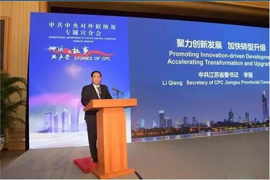 8月31日,中共中央對(duì)外聯(lián)絡(luò)部在京舉行“中國(guó)共產(chǎn)黨的故事:江蘇省委的實(shí)踐——?jiǎng)?chuàng)新驅(qū)動(dòng)、轉(zhuǎn)型發(fā)展”專(zhuān)題宣介會(huì),邀請(qǐng)中共江蘇省委向訪(fǎng)華的外國(guó)政黨政要、駐華使館高級(jí)外交官、外國(guó)商會(huì)、跨國(guó)公司駐華代表等,宣介習(xí)近平總書(shū)記治國(guó)理政新理念新思想新戰(zhàn)略在江蘇的貫徹落實(shí)情況,展示江蘇省委落實(shí)習(xí)近平總書(shū)記重要指示精神,在創(chuàng)新驅(qū)動(dòng)轉(zhuǎn)型發(fā)展生動(dòng)實(shí)踐中的突出成效和經(jīng)驗(yàn)做法。