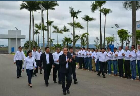 2015年、2016年,繼2012年奠基儀式后,王民董事長(zhǎng)再次來(lái)到徐工巴西公司。一進(jìn)工廠(chǎng)董事長(zhǎng)就飽含深情地走遍廠(chǎng)區(qū)的每一個(gè)角落,曾經(jīng)還在腦海中的海外基地建設(shè)藍(lán)圖,與如今現(xiàn)代化的廠(chǎng)房、花園式的廠(chǎng)區(qū)形成鮮明對(duì)比,王民董事長(zhǎng)對(duì)此感慨萬(wàn)分,說(shuō)到“徐工巴西一定要成為中國(guó)制造走出去的國(guó)際化樣板和標(biāo)桿!”十七年耕耘跋涉路,這支能征善戰(zhàn)的“徐工鐵軍”勁旅從零做起,在巴西和南美大地樹(shù)立起了徐工集團(tuán)的國(guó)際品牌,演繹了徐工集團(tuán)的傳奇和精彩,為中巴全面戰(zhàn)略合作的壯美畫(huà)卷上寫(xiě)下了屬于徐工集團(tuán)濃墨重彩的一筆。王民董事長(zhǎng)指出:徐工巴西要堅(jiān)定戰(zhàn)略目標(biāo),為祖國(guó)貢獻(xiàn)一個(gè)世界級(jí)的品牌!