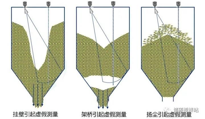通過輸出位置信息來反應(yīng)料位情況,無法克服倉內(nèi)物料掛壁、架橋,揚塵等干擾因素,測量數(shù)據(jù)不準(zhǔn)確,誤差太大。