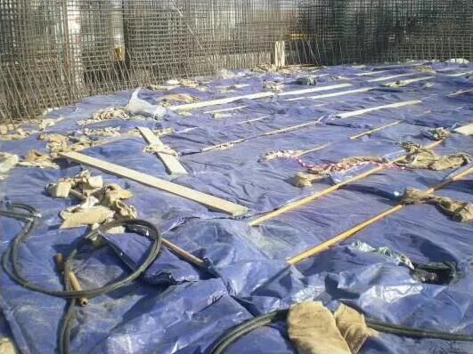 頂板、梁混凝土上部保溫為在新澆筑的混凝土表面先覆蓋塑料布再覆蓋一層草墊。對于邊角等薄弱部位或迎風(fēng)面應(yīng)加蓋草墊并做好搭接。如室外日平均氣溫在0℃及0℃以下采取在澆制的混凝土表面蓋一層塑料膜,以防稻草等覆蓋物受潮,再在混凝土周圍蓋上稻草,最后在坑口上蓋一層塑料以增強(qiáng)保溫性,來保證混凝土的質(zhì)量。混凝土的入模溫度控制在6℃以上;混凝土澆筑后的起始養(yǎng)護(hù)溫度不低于5℃,若達(dá)不到以上溫度,則要提高養(yǎng)護(hù)水溫以滿足要求。