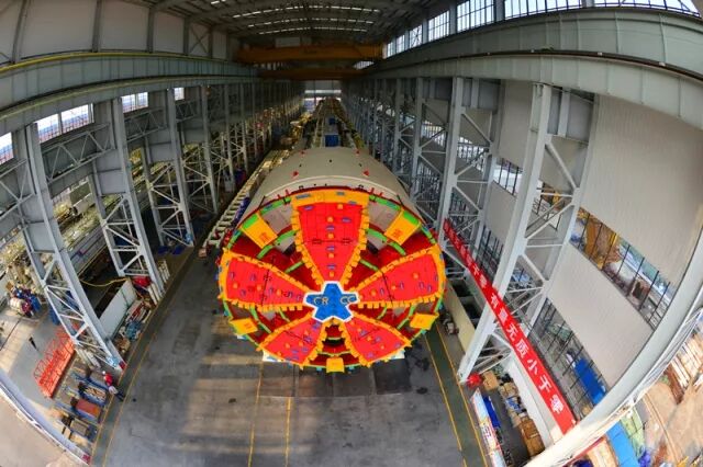▲鐵建重工自主研制的國產(chǎn)首臺(tái)常壓換刀式超大直徑泥水平衡盾構(gòu)機(jī)