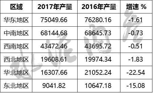 各區(qū)域水泥產(chǎn)量數(shù)據(jù)(單位:萬噸)