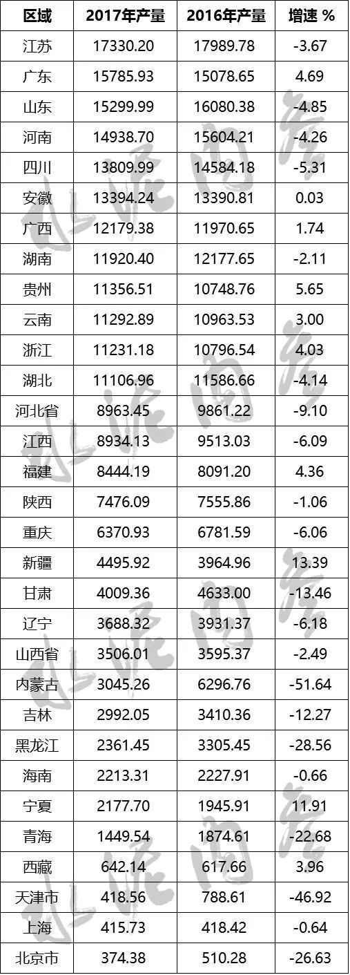 各省市水泥產(chǎn)量排名(單位:萬噸)