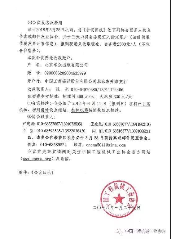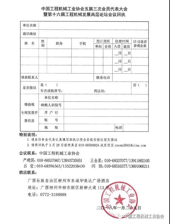 中國(guó)工程機(jī)械工業(yè)協(xié)會(huì)茲定于2018年4月11~14日在廣西柳州市召開“中國(guó)工程機(jī)械工業(yè)協(xié)會(huì)五屆三次會(huì)員代表大會(huì)暨第十六屆工程機(jī)械發(fā)展高層論壇”。會(huì)員代表大會(huì)的主題是“新時(shí)代、新理念、新作為”。