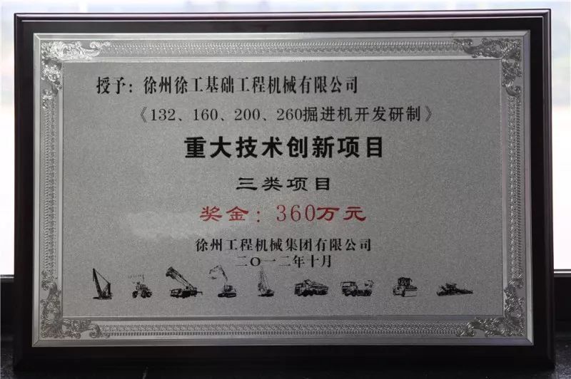 2011年,當(dāng)年9月,徐工基礎(chǔ)推出首臺(tái)具有自主知識(shí)產(chǎn)權(quán)的EBZ160掘進(jìn)機(jī),其成功研制填補(bǔ)了徐工在煤礦掘進(jìn)機(jī)方面的空白,當(dāng)年順利通過煤安認(rèn)證、實(shí)現(xiàn)銷售;2012年10月,EBZ135、160、200、260系列掘進(jìn)機(jī)被授予徐工集團(tuán)重大技術(shù)創(chuàng)新項(xiàng)目,獲得獎(jiǎng)金360萬元。