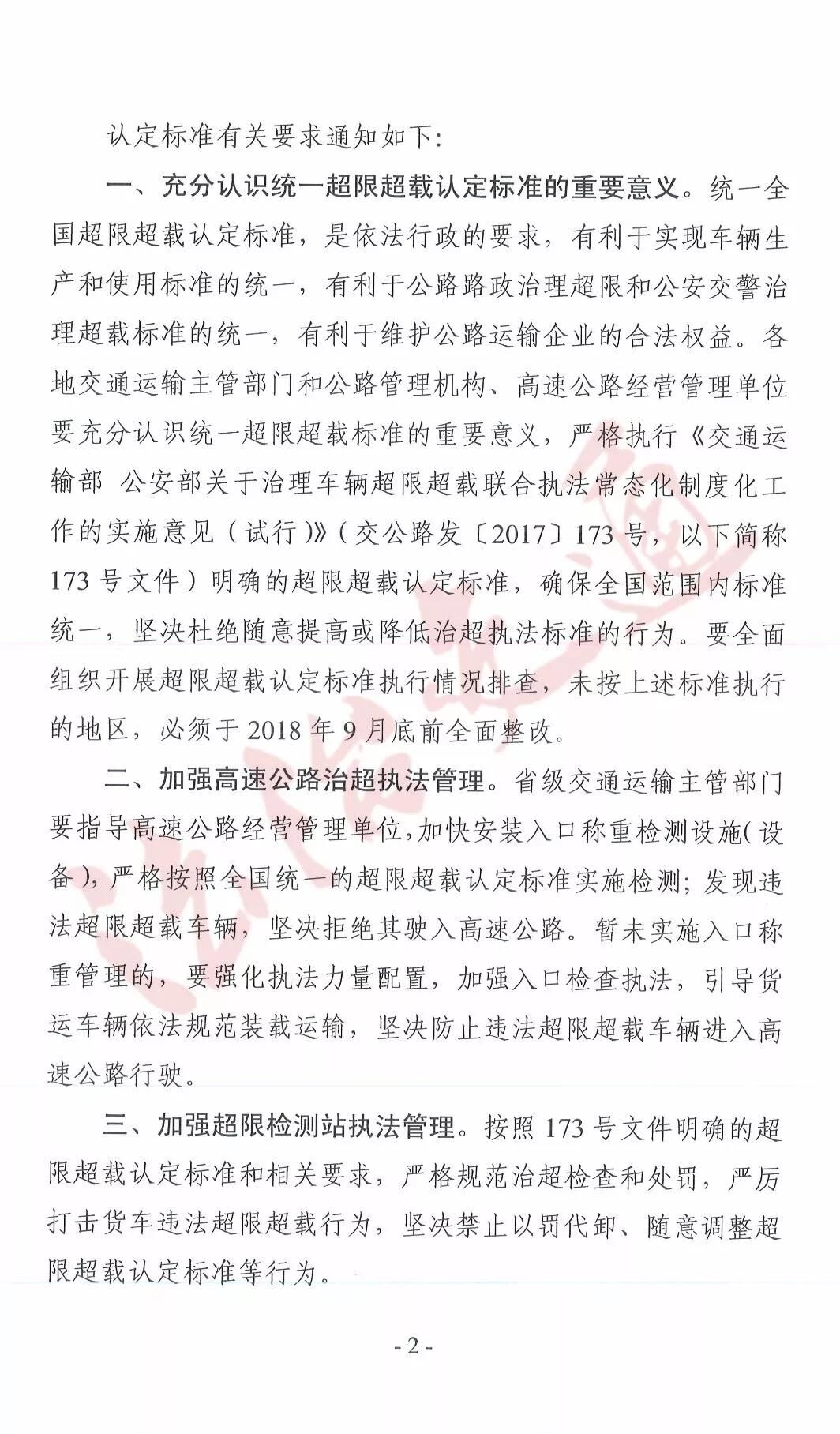 文件強(qiáng)調(diào):部分地區(qū)依然未嚴(yán)格執(zhí)行全國(guó)統(tǒng)一超限超載認(rèn)定標(biāo)準(zhǔn),部分高速公路對(duì)超限30%的車輛仍然按照基本費(fèi)率計(jì)重收費(fèi),導(dǎo)致高速公路與普通公路治超標(biāo)準(zhǔn)不一致,不同省份執(zhí)法力度不統(tǒng)一等問(wèn)題。未按標(biāo)準(zhǔn)執(zhí)行的地區(qū),9月底前全面整改。