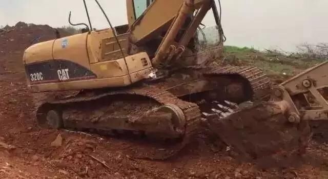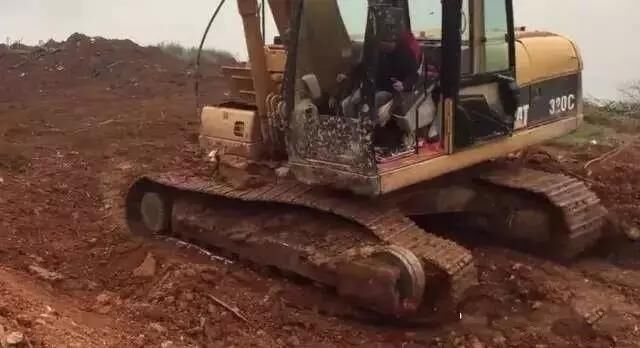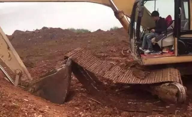把機身轉(zhuǎn)向左邊,再次用挖機把履帶給搞起