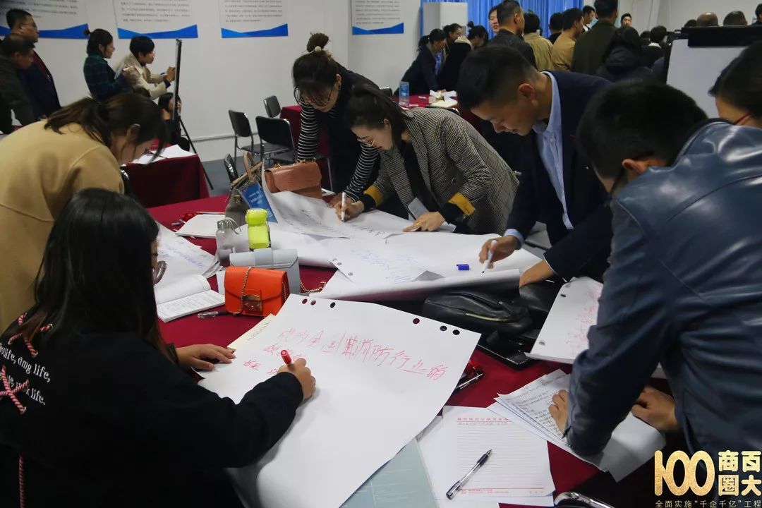 通過今天的課程,在座的各位企業(yè)老板也是受益匪淺,不斷上臺分享學(xué)習(xí)感受。同時,在分小組討論期間,各小組形成了濃厚的競爭氛圍,集體融入感極高。百大商圈今天所采取的新型培訓(xùn)模式也得到了大家的高度認可,并在微信朋友圈進行分享,培訓(xùn)內(nèi)容也得到了有效的落實。