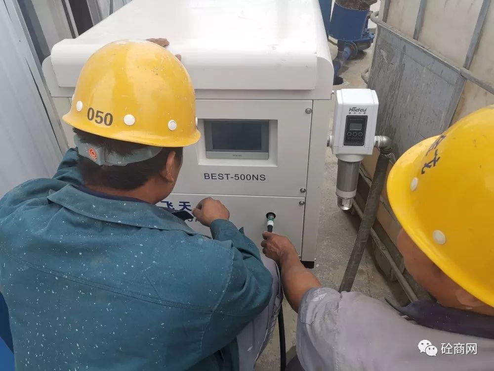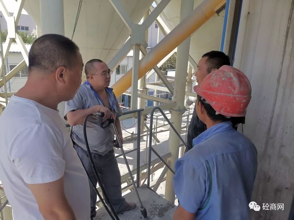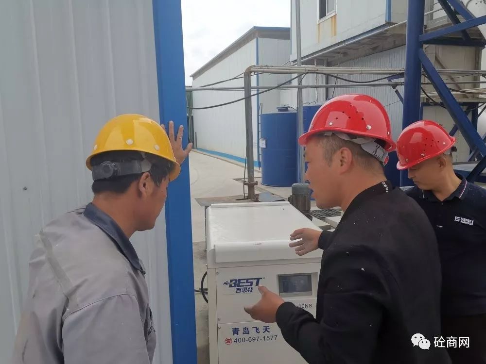 到了青島某攪拌站后,其攪拌站負責(zé)人攜站長親自到現(xiàn)場觀看試機效果。