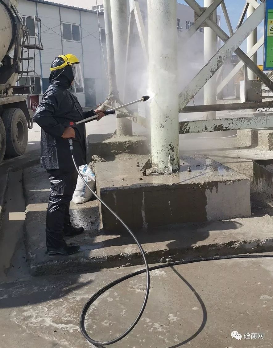 在楊技術(shù)員給站上工作人員進行初步講解指導(dǎo)后,首先對兩年沒有清理過的水泥倉支腿下方累積的混凝土進行了處理。那么,效果究竟怎么樣呢?具體視頻關(guān)注“砼商網(wǎng)”公眾號,回復(fù)“高壓清洗機”即可獲得技術(shù)員正準備打攪拌機主樓容易噴濺混凝土的地方時該攪拌站站長說道,這可得有兩年沒清理過的混凝土結(jié)塊,十幾公分厚呀!你們這高壓清洗機能打掉嗎?這是混凝土啊!這么長時間了,還這么厚,打不下去怎么辦?正在小編心里打鼓的時候,楊技術(shù)員說道,沒問題,放心吧!