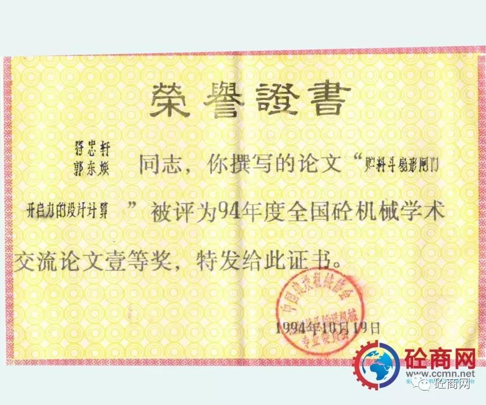 行業(yè)引領(lǐng)發(fā)展,研發(fā)人員積極性高。本人作為科研人員先后發(fā)表了《儲料斗扇形閘門開啟力的設(shè)計(jì)計(jì)算》被評為1994年度全國砼機(jī)械學(xué)術(shù)交流論文一等獎,本文引入“水力學(xué)半徑”的概念,較為詳盡的介紹了目前在混凝土攪拌站、配料站上大量采用的扇形閘門料斗的開啟力計(jì)算,為配料機(jī)構(gòu)的設(shè)計(jì)選型提供了理論依據(jù);發(fā)表的《談裝載機(jī)上料形式混凝土配料(攪拌站)的發(fā)展》被評為1992年度全國砼機(jī)械學(xué)術(shù)交流會優(yōu)秀論文獎,本文針對當(dāng)時(shí)混凝土攪拌站上料型式較多:懸臂拉鏟、鏈斗機(jī)及裝載機(jī)上料型式等,分析了國內(nèi)發(fā)展的實(shí)際,提出了裝載機(jī)上料形式為未來發(fā)展方向;1997年發(fā)表在《建設(shè)機(jī)械技術(shù)與管理》雜志第五期的《混凝土泵攪拌葉片的合理布置》,以全球量大面廣的S閥為例,分析了幾種葉片布局形式對混凝土泵吸料性的影響,設(shè)計(jì)了一種正泵送料、反泵扒料合理的攪拌葉片布局形式。