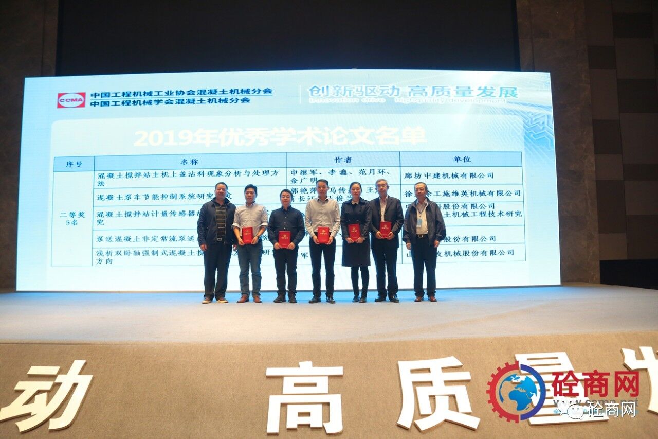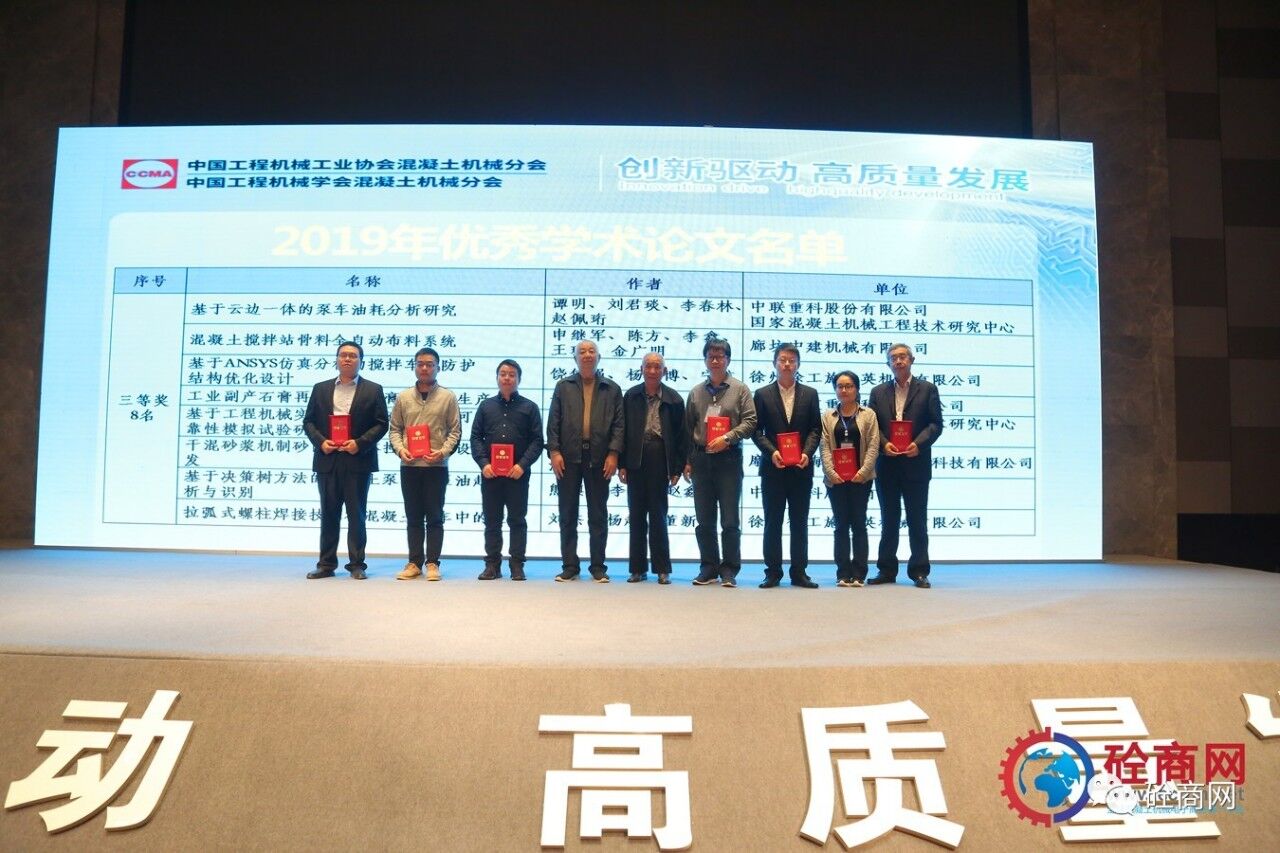 2019年的論文征集評選結(jié)果已經(jīng)揭曉,共收到參評論文26篇,其中會長單位中聯(lián)重科、國家混凝土機(jī)械技術(shù)研究中心《基于離散單元法立軸沖擊破碎機(jī)成砂率研究》等三篇論文獲得一等獎,副會長單位廊坊中建機(jī)械有限公司《混凝土攪拌站主機(jī)上蓋沾料現(xiàn)象分析與處理方法》共5篇論文獲得二等獎、中聯(lián)重科、國家混凝土機(jī)械技術(shù)研究中心《基于云邊一體的泵車油耗分析研究》等8篇論文獲得三等獎,其余10篇均獲優(yōu)秀論文獎。在此我提議:讓我們以熱烈掌聲向中聯(lián)重科、徐工施維英、廊坊中建機(jī)械有限公司三家優(yōu)秀組織單位和論文獲獎人員表示最熱烈的祝賀和最誠摯的感謝——感謝大家為中國混凝土機(jī)械行業(yè)的技術(shù)進(jìn)步所做出的貢獻(xiàn)。