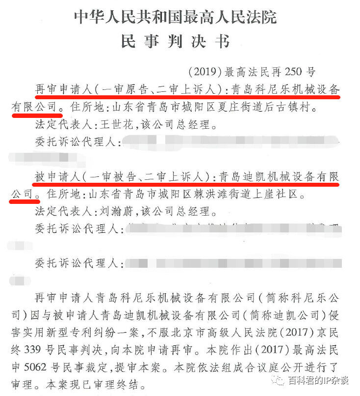 青島科尼樂(lè)機(jī)械設(shè)備有限公司訴青島迪凱機(jī)械設(shè)備有限公司侵害實(shí)用新型專(zhuān)利權(quán)糾紛案。