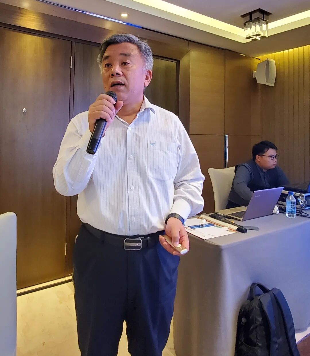 陜西華山路橋集團(tuán)有限公司設(shè)備材料部部長趙宗漢在座談交流中發(fā)言