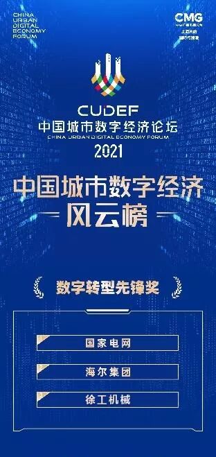論壇上,《中國(guó)城市數(shù)字經(jīng)濟(jì)風(fēng)云榜》榮耀發(fā)布。榜單包括“城市數(shù)字經(jīng)濟(jì)競(jìng)爭(zhēng)力綜合排名”,同時(shí)多項(xiàng)重磅獎(jiǎng)項(xiàng)發(fā)布,“數(shù)字賦能先鋒獎(jiǎng)”“數(shù)字轉(zhuǎn)型先鋒獎(jiǎng)”“數(shù)字應(yīng)用方案獎(jiǎng)”。徐工機(jī)械與國(guó)家電網(wǎng)、海爾集團(tuán)同時(shí)榮獲“數(shù)字轉(zhuǎn)型先鋒獎(jiǎng)”,成為唯一入選的工程機(jī)械制造企業(yè)。