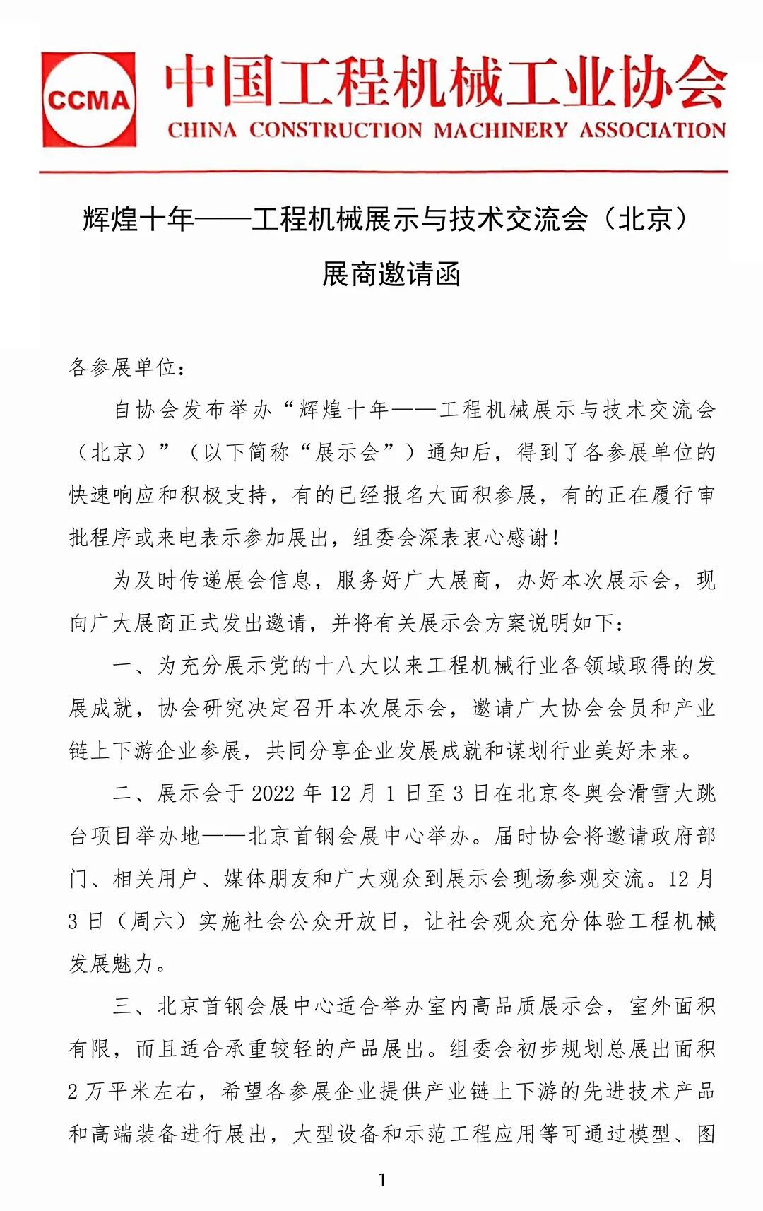 展商邀請函:輝煌十年——工程機械展示與技術(shù)交流會(北京)
