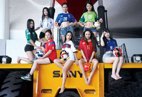 目前,最湖南之湘女郎足球寶貝大賽16強選手已經產生,有4位在三一拍攝過大片的寶貝入圍。8位足球寶貝分別穿著各自支持的世界杯球隊服裝,緊貼三一產品,或立或坐,擺出各種拍攝姿勢。在三一產品的映襯下,足球寶貝顯得格外較小,而她們的氣質也讓身邊的產品感覺多了幾分柔和。當魅力四射的足球寶貝遇上時尚大氣的重型機械將會是一種什么樣的場面?6月14日,最湖南之湘女郎足球寶貝大賽的選手們就來到了三一長沙產業(yè)園,展現了一場美女與機械的激情碰撞。