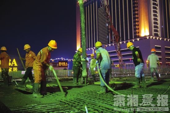 8月15日晚8時,長沙萬家麗廣場對面,一輛水泥罐車開進(jìn)萬家麗路與荷花路交會處東南角。接著這輛罐車伸出高高的手臂,連續(xù)不斷地向萬家麗路高架輸送預(yù)拌混凝土,數(shù)十名工程技術(shù)人員在綁扎好鋼筋的最后一跨箱梁上嫻熟操作。上海城建市政集團(tuán)萬家麗路快速化改造工程項(xiàng)目副總指揮、項(xiàng)目經(jīng)理傅建平透露,15日晚8時至16日上午10時,十名工程技術(shù)人員要完成120米橋面混凝土澆筑,到16日上午10時,萬家麗路快速化高架主線結(jié)構(gòu)全面貫通。今年國慶節(jié),作為湖南長沙乃至湖南首條按照快速化改造的高架橋,將實(shí)現(xiàn)全面竣工通車。