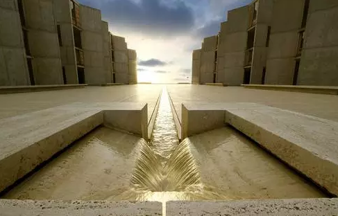 路易斯·康設計的加利福尼亞索爾克研究所,是一件大師級的作品。這里既是“具有學術氛圍的隱居之所”,也是科學研究的靈感之地?;炷恋臐仓昧藦牧_馬建筑研究汲取的技術。為了充分體現(xiàn)混凝土材料的特色,建筑師在材料設計完成后沒有再做任何的裝飾。