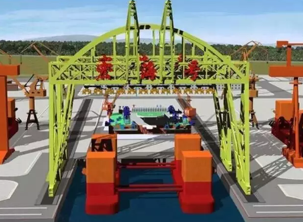 “宏海”號22000噸起重機(jī),主要用于海上石油鉆井平臺整體的從陸地運(yùn)到海上,將以往“化整為零”的建造方式變?yōu)椤罢嬲 ?。借?2000噸起重能力的“大家伙”,把拼裝好的海洋油氣鉆井平臺從陸地上的專用拼裝胎位上提起來,直接放到海上去。設(shè)備總體高度150米,提升高度最高為65米,相當(dāng)于把重量為500節(jié)高鐵車廂或20層樓高的超重、超大型物件提升起來并行走。主體采用桁架式結(jié)構(gòu)、拱形外觀、多吊點(diǎn)雙吊梁承載,跨度124.3米,宏海號總重14800噸,相當(dāng)于兩個(gè)埃菲爾鐵塔的重量?!伴_下門,快遞到了啊,你的鉆井平臺~”