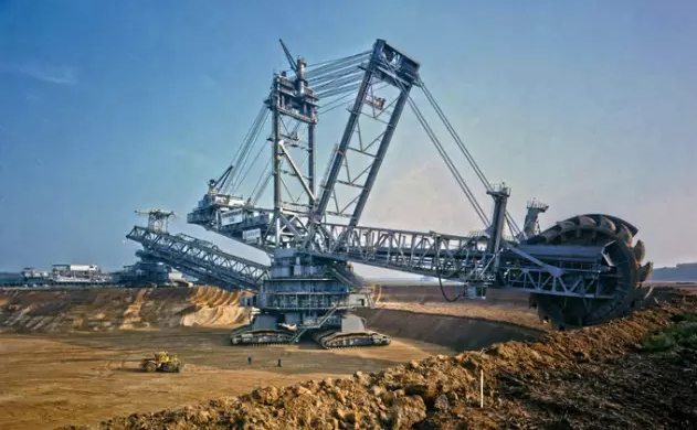 這是由德國克虜伯Krupp出品的世界上最大挖掘機(jī),96米高(相當(dāng)于30層樓),240米長,49米寬,14210噸重,其裝備20個(gè)8.6立方米鏟斗,總裝機(jī)容量2萬千瓦,輪斗驅(qū)動(dòng)采用3臺1680千瓦電機(jī),總功率5040千瓦(6600馬力)。只需一天,這個(gè)大家伙就能挖出24萬立方米土。曾有一次一輛80噸的推土機(jī)不幸被挖起并塞到了輪斗軸承里,可見它的力量之大。其移動(dòng)速度最大為600m/h,制造費(fèi)用達(dá)到1億美元。挖掘機(jī)技術(shù)哪家強(qiáng)?德國克虜伯敢稱王~