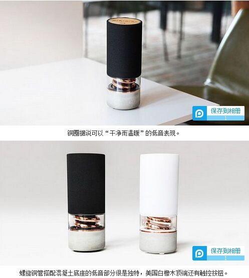 今天我們要介紹的是一款造型設(shè)計和材質(zhì)都非常獨特的藍(lán)牙音箱,它就是結(jié)合了混凝土基座和螺旋銅管低音部件的Pavilion。該揚(yáng)聲器目前正在Kickstarter上進(jìn)行眾籌,其設(shè)計者則是Hult Design。Pavilion支持藍(lán) Pavilion的直徑為3.95英寸(10 cm)、高10.22英寸(26cm)、重3.3磅(1.5 kg),感興趣的伙伴可以拿出$229美元去買一個白色或黑色版本(比零售價要便宜$110美元)。