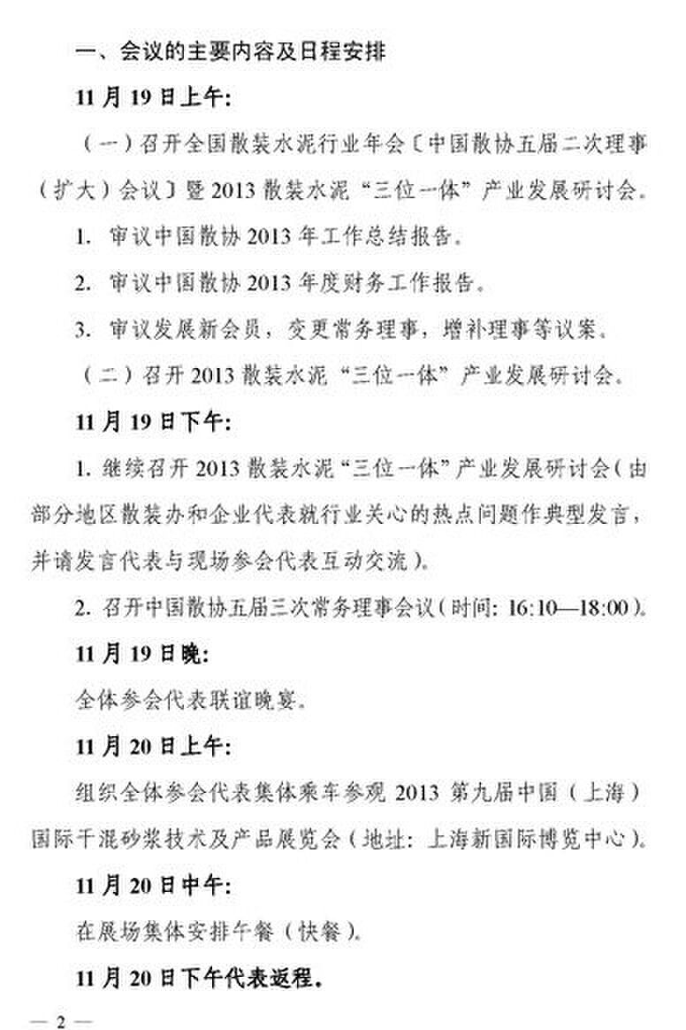 關(guān)于召開(kāi)全國(guó)散裝水泥行業(yè)年會(huì)暨2013散裝水泥“三位一體”產(chǎn)業(yè)發(fā)展研討會(huì)的通知