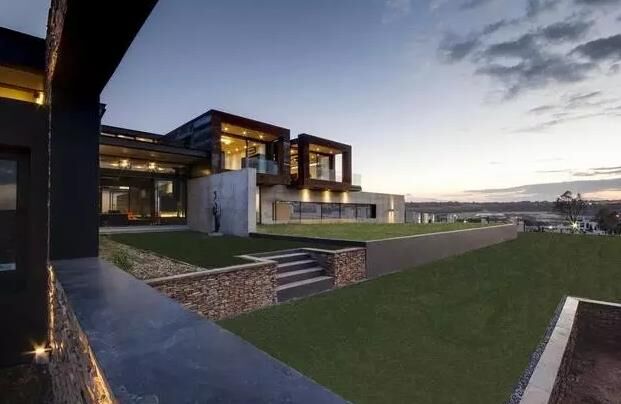 建筑師用鋼鐵,混凝土,玻璃為主要材料,結(jié)合就近取材的天然板巖和花崗巖,天然實(shí)木地板 ,打造了一個(gè)工業(yè)時(shí)代感的現(xiàn)代化豪宅,貫穿建筑的兩級(jí)錯(cuò)落水景是設(shè)計(jì)中的主要亮點(diǎn)。