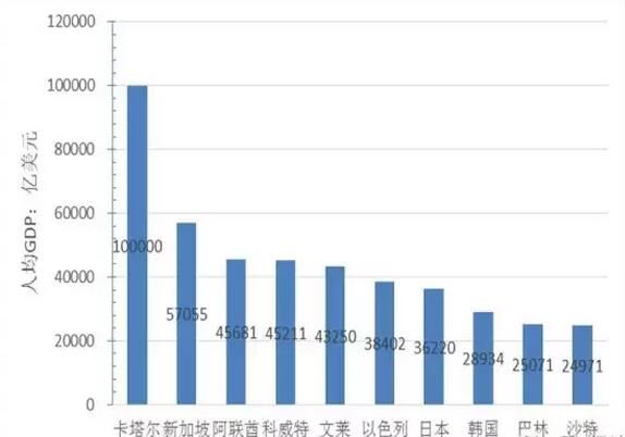 從人均GDP看,貧富差距巨大,最富有國家的人均財富是最窮國家的160倍。人均GDP超過2萬美元的國家13個,分別為卡塔爾、新加坡、阿聯(lián)酋、科威特、文萊、以色列、日本、韓國、巴林、沙特、斯洛文尼亞、捷克共和國、愛沙尼亞,其中卡特爾的人均GDP超過了10萬美元、位居第一,為最窮國家阿富汗人均GDP的160倍;人均GDP在1萬美元到2萬美元的國家13個,人均GDP在5000美元到1萬美元的國家13個,人均GDP低于5000美元的國家28個。中國人均GDP8000美元,在“一帶一路”沿線國家中位于31名。