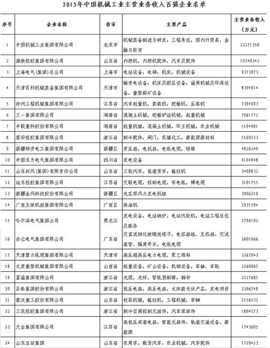 機械百強前三十名名單(后附全名單)