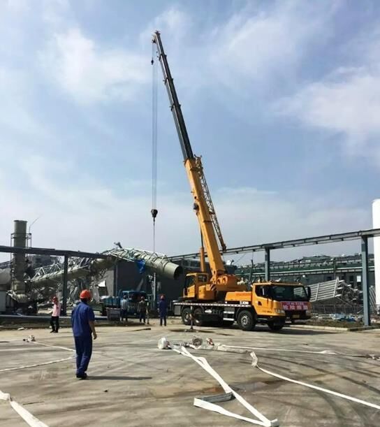 23日下午,由6名人員、4臺(tái)起重機(jī)、1臺(tái)挖掘機(jī)和兩輛服務(wù)車組成的救援小分隊(duì)趕到鹽城阜寧縣災(zāi)區(qū),緊急與當(dāng)?shù)鼐仍渚?、政府取得?lián)系,聽從統(tǒng)一指揮,全力投入現(xiàn)場搶險(xiǎn)。