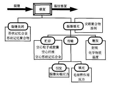 仿生自愈合法是一種新的裂縫處理方法,它模仿生物組織對受創(chuàng)傷部位自動分泌某種物質,而使創(chuàng)傷部位得到愈合的機能,在混凝土的傳統(tǒng)組分中加入某些特殊組分(如含粘結劑的液芯纖維或膠囊),在混凝土內部形成智能型仿生自愈合神經網絡系統(tǒng),當混凝土出現裂縫時分泌出部分液芯纖維可使裂縫重新愈合。