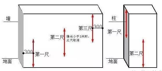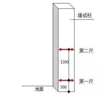 四、垂直度1、指標(biāo)說(shuō)明:反映層高范圍內(nèi)剪力墻、混凝土柱表面垂直的程度。2、測(cè)量工具:2米靠尺3、測(cè)量方法和數(shù)據(jù)記錄:(1)剪力墻:任取長(zhǎng)邊墻的一面作為1個(gè)實(shí)測(cè)區(qū)。累計(jì)實(shí)測(cè)實(shí)量不得少于5個(gè)實(shí)測(cè)區(qū)。(2)當(dāng)墻長(zhǎng)度小于3米時(shí),同一面墻距兩端頭豎向陰陽(yáng)角約30cm位置,分別按以下原則實(shí)測(cè)2次:一是靠尺頂端接觸到上部混凝土頂板位置時(shí)測(cè)1次垂直度,二是靠尺底端接觸到下部地面位置時(shí)測(cè)1次垂直度。混凝土墻體洞口一側(cè)為垂直度必測(cè)部位。這2個(gè)實(shí)測(cè)值分別作為判斷該實(shí)測(cè)指標(biāo)合格率的2個(gè)計(jì)算點(diǎn)。(3)當(dāng)墻長(zhǎng)度大于3米時(shí),同一面墻距兩端頭豎向陰陽(yáng)角約30cm和墻中間位置,分別按以下原則實(shí)測(cè)3次:一是靠尺頂端接觸到上部混凝土頂板位置時(shí)測(cè)1次垂直度,二是靠尺底端接觸到下部地面位置時(shí)測(cè)1次垂直度,三是在墻長(zhǎng)度中間位置靠尺基本在高度方向居中時(shí)測(cè)1次垂直度?;炷翂w洞口一側(cè)為垂直度必測(cè)部位。這3個(gè)實(shí)測(cè)值分別作為判斷該實(shí)測(cè)指標(biāo)合格率的3個(gè)計(jì)算點(diǎn)。(4)混凝土柱:任選混凝土柱四面中的兩面,分別將靠尺頂端接觸到上部混凝土頂板和下部地面位時(shí)各測(cè)1次垂直度。這2個(gè)實(shí)測(cè)值分別作為判斷該實(shí)測(cè)指標(biāo)合格率的2個(gè)計(jì)算點(diǎn)。4、示例: