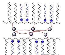 首先,控制坍落度敏感性方面,最新PCE出現(xiàn)親水性網(wǎng)絡(luò)交聯(lián)技術(shù),其分子結(jié)構(gòu)示意圖如下: