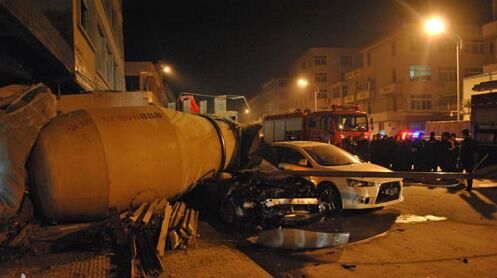 7月27日晚20時(shí)40分許,一輛紅色科魯茲小型轎車在槐蔭區(qū)濱河南路由西向東行駛,車上有兩名小伙子,當(dāng)車開到臘山河西路路口時(shí)突然迎面撞上了一輛重型特殊結(jié)構(gòu)水泥攪拌車,這輛攪拌車正沿臘山河西路由北向南行駛,車的右側(cè)中部將小轎車彈飛。巨大的撞擊力造成小轎車司機(jī)當(dāng)場死亡,乘車人受重傷。