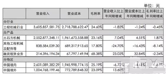三一重工2016年半年度報(bào)告數(shù)據(jù)(部分) |