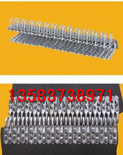 雙排扣結(jié)構(gòu):對(duì)輸送帶寬度的適應(yīng)性強(qiáng),接頭成槽性好;訂扣輕便:使用拉桿式訂扣機(jī)裝訂,勞動(dòng)強(qiáng)度低,工效高,一次裝訂成功率高;接頭強(qiáng)度高:交錯(cuò)式扣釘布置,扣釘相對(duì)密度小,強(qiáng)度高。裝訂后扣釘埋入扣體,耐磨性好,使用壽命長(zhǎng)。