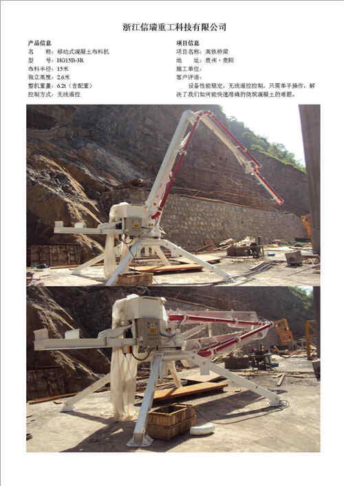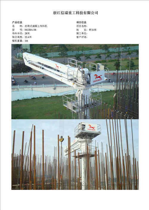 歸屬行業(yè):信瑞重工HG24A-3R樓面內(nèi)爬混凝土布料機(jī)