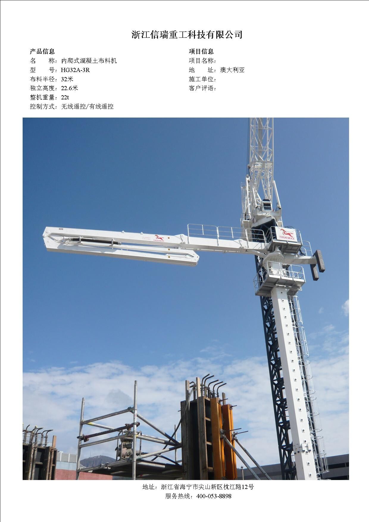 歸屬行業(yè):信瑞重工HG33A-4R內(nèi)爬式混凝土布料機
