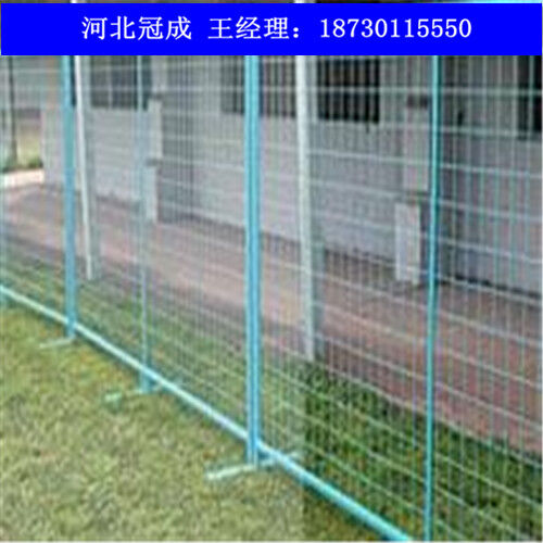 臨時(shí)護(hù)欄網(wǎng),又可以稱為移動(dòng)圍欄,臨時(shí)隔離欄,移動(dòng)式安全圍欄網(wǎng) 臨時(shí)護(hù)欄分類臨時(shí)護(hù)欄從工藝上來(lái)看可以分為兩種:1.焊接網(wǎng)臨時(shí)護(hù)欄;2.編織網(wǎng)臨時(shí)護(hù)欄。 1.焊接網(wǎng)臨時(shí)護(hù)欄網(wǎng) 主要規(guī)格如下 絲徑:3.6-6mm 孔徑:50X200mm 75X150mm 80X160mm 100X200mm等 網(wǎng)片高度:1.0-2.0m 網(wǎng)片寬度:2.0-3.0m 立柱:方形柱 圓形柱 桃形柱 新型防盜柱 表面處理:熱度鋅、 浸塑、 噴塑、 噴砂、 靜電噴涂等。 顏色:以綠色為主(黃色,藍(lán)色等) 以上規(guī)格,顏色等也可根據(jù)客戶需要加工定做。 2.編織網(wǎng)臨時(shí)護(hù)欄 主要規(guī)格如下 絲徑:1.5-4mm 孔徑:50X50mm 60X60mm 70X70mm 等 網(wǎng)片規(guī)格:1mX2m 1.5mX2m 2mX2.5m 2mx3m等?! ×⒅悍叫沃?圓形柱 表面處理:PVC包塑 熱鍍鋅 顏色:主要以綠色,藍(lán)色為主。 以上規(guī)格可根據(jù)客戶需求加工定做?! ∨R時(shí)護(hù)欄網(wǎng)是適用臨時(shí)隔離,臨時(shí)隔斷,臨時(shí)圈圍,是靈活性極強(qiáng)的產(chǎn)品?! ∨R時(shí)護(hù)欄網(wǎng)主要采用可拆接構(gòu)件將護(hù)欄主片與底座或防護(hù)柱進(jìn)行標(biāo)準(zhǔn)連接,等特定需要的時(shí)候可輕松拆除,進(jìn)行移動(dòng)安裝。